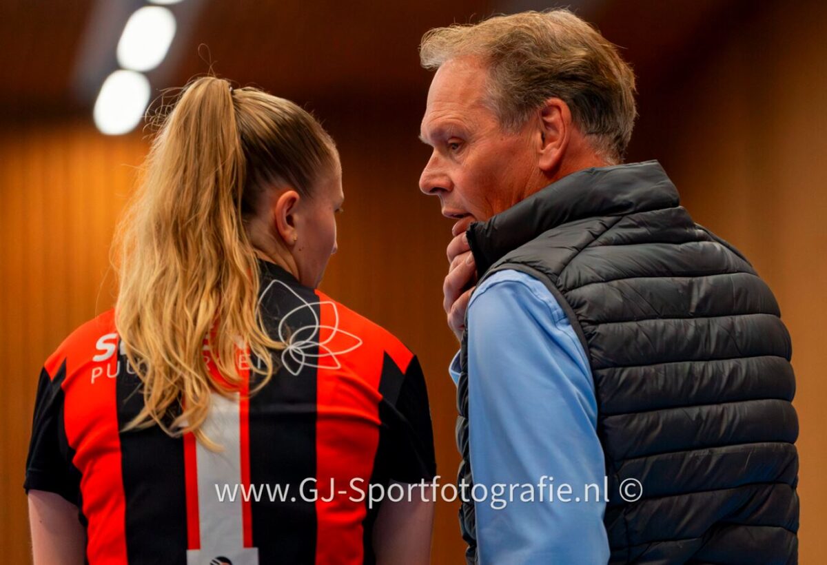 Sabine was onmiskenbaar de ster in de wedstrijd tegen Groen Geel, waarin zij maar liefst zeven keer het net vond. Haar indrukwekkende prestatie hielp haar team niet alleen in de race, maar toonde ook haar geweldige vorm en vastberadenheid. Na afloop van de wedstrijd keek Sabine met trots terug op haar prestaties. “Het was een intensieve wedstrijd, maar ik ben blij dat ik mijn steentje heb kunnen bijdragen,” zei Sabine. “De zeven doelpunten waren het resultaat van goed samenspel en een focus die we als team hadden. Het voelde geweldig om zo mijn bijdrage te leveren, maar ik weet dat we als team sterker staan.” Met haar geweldige optreden bevestigde Sabine opnieuw haar waarde voor het team. Luister naar Sabine Visser voor de camera van Kv Mid Fryslan TV.